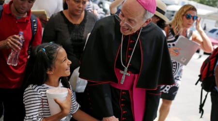 WASHINGTON (CNS) — Bishop Mark J. Seitz of El Paso, Texas, was able June 27 to help a migrant family seeking asylum successfully cross an international bridge from Mexico into the United States.