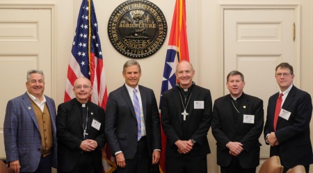 Bishop Talley was joined by Bishop J. Mark Spalding, Nashville, and Bishop Mark Beckman, Knoxville, and met with Governor Bill Lee and several state legislators. The Governor and the three Bishops had a productive discussion addressing several key issues to our Catholic faith including: Education, Immigration, and Right to Life. The same took place with the legislators.