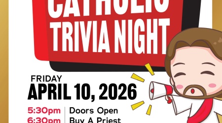 Come test your Catholic faith and have lots of fun doing it with several of our Priests on Easter Friday evening of the Octave. Doors will open at 5:30pm. See the flyer below for more details. Play will begin at 7:00pm. All proceeds will benefit church activities.