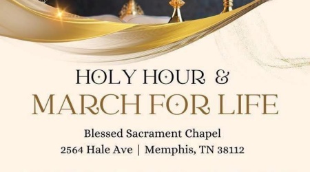 The Holy Hour will begin in the morning at 10:00am at our beautiful Blessed Sacrament Catholic Chapel, 2564 Hale Ave., Memphis, with Father Yoelvis Gonzalez, Pastor, St. Theresa the Little Flower Catholic Church, Memphis, presiding over the event. The March will begin at 11:00am at Blessed Sacrament Catholic Chapel to Planned Parenthood, 2430 Poplar Ave., Memphis.