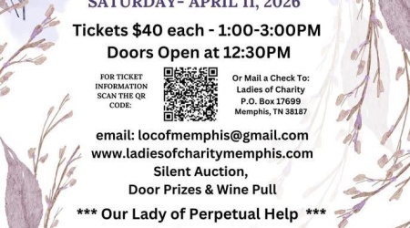 The Memphis Chapter of Ladies of Charity will be hosting its Annual Fashion Show & Afternoon Tea this coming Saturday afternoon, April 11, from 1:00pm-3:00pm, in St. Therese Hall at our beautiful Our Lady of Perpetual Help Catholic Church Campus, 8151 Poplar Ave., Germantown. Doors open at 12:30pm.
