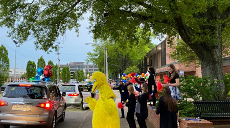 As families drove around the block in their decorated cars, volunteers took portraits of the guests of honor and handed out crowns, flowers and other gifts. As the cars passed, students from surrounding schools and other adult volunteers danced, cheered and waved signs of encouragement, even Big Bird made an appearance and guests got a final farewell by local firefighters from City of Memphis Fire Dept.