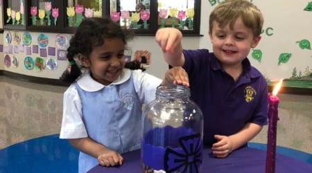 Every week during Lent children from the St. Agnes – St. Dominic Early Childhood Center had a prayer service where they collected quarters which they earned for doing good deeds. The money was donated to the Forrest Spence Fund.