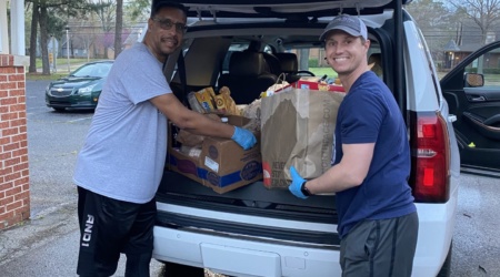 Bartlett, Tenn. – Through a deep care for families in need, the Knights of Columbus recently hosted its first Drive-Thru Food Giveaway at St. Ann Catholic Church in Bartlett. At a time when the grocery store shelves can empty fast, many faithful St. Ann parishioners and other community members came forward with generous money and food donations.