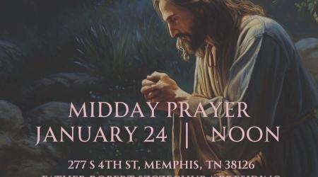 The Prayer will take place this Saturday, January 24, 12:00pm (noon) at our St. Patrick Church, 277 S 4th St., Downtown Memphis. Father Robert Szczechura, Pastor, will preside over the Midday Prayer with Bishop David P. Talley in attendance with many other Clergy and Religious.
