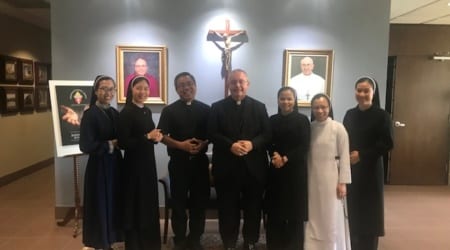 Fr. Simon Thoi Hoang, pastor of Sacred Heart Catholic Church brought five Sisters from three communities by the chancery to visit Bishop David this morning.
